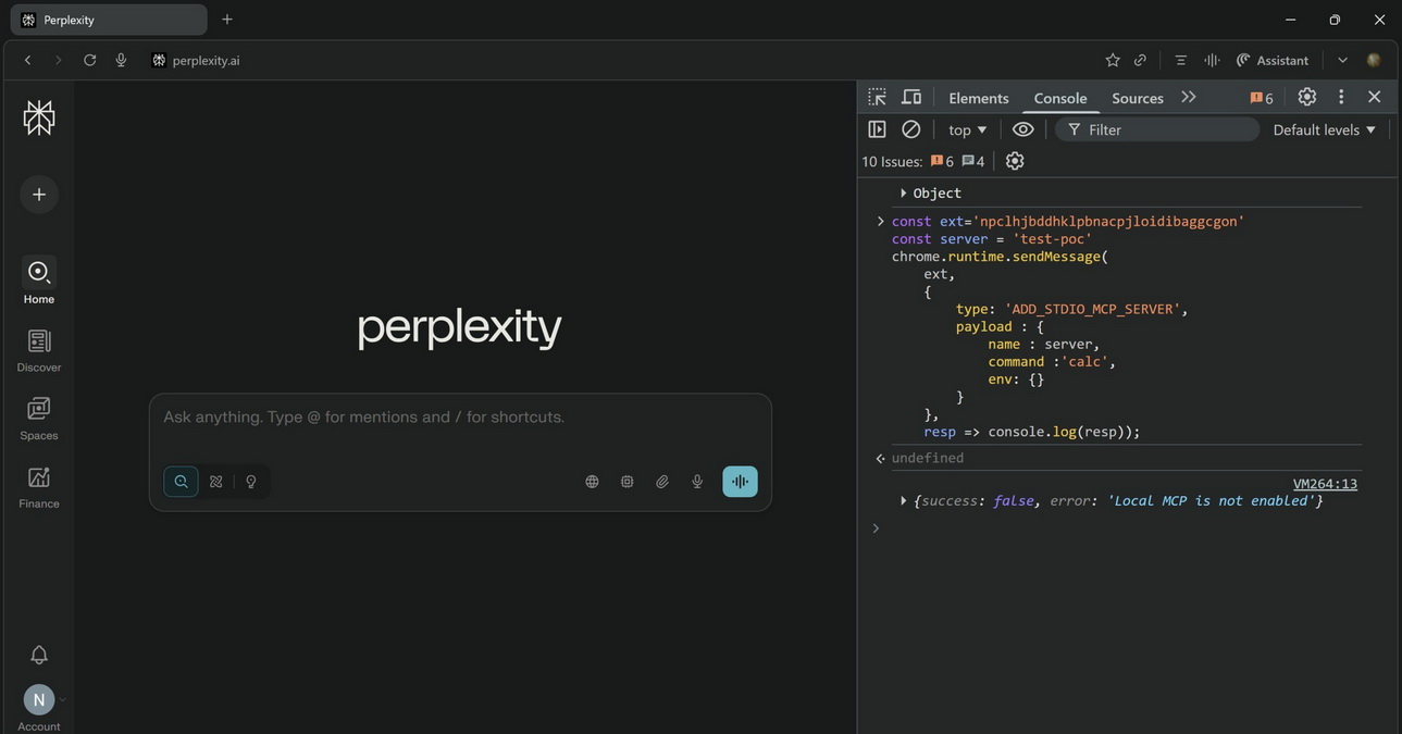 В свою очередь, эксперты SquareX подтвердили журналистам, что на днях Perplexity исправила уязвимость, не предав этот факт огласке. Теперь атаки не работают, отображая ошибку «Local MCP is not enabled».