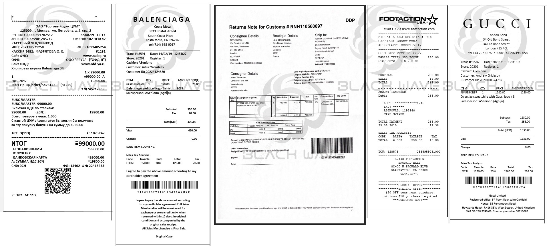Шаблоны чеков популярных брендовых магазинов.