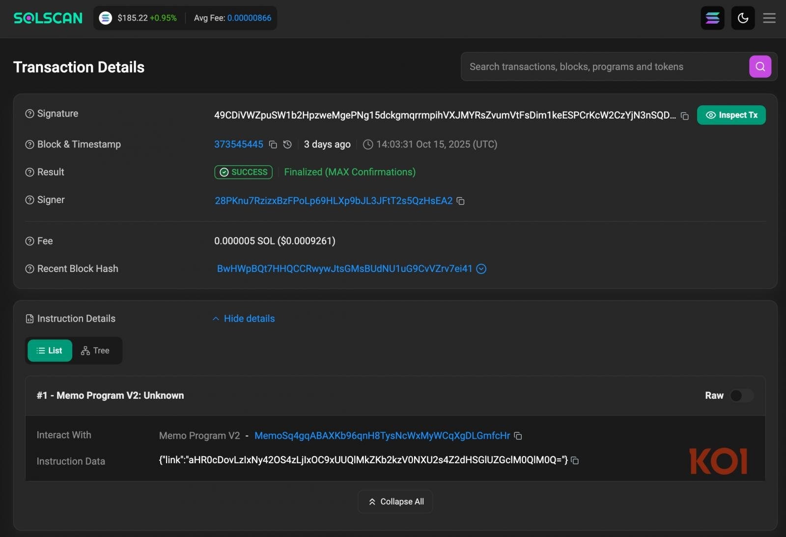 В коде червя присутствует адрес кошелька с транзакциями в блокчейне Solana, которые содержат base64-закодированные ссылки на пейлоады следующей стадии атаки. Использование блокчейна для сокрытия пейлоадов набирает популярность среди преступников из-за множества операционных преимуществ: устойчивость к блокировкам, анонимность, низкая стоимость и гибкость на случай обновлений.