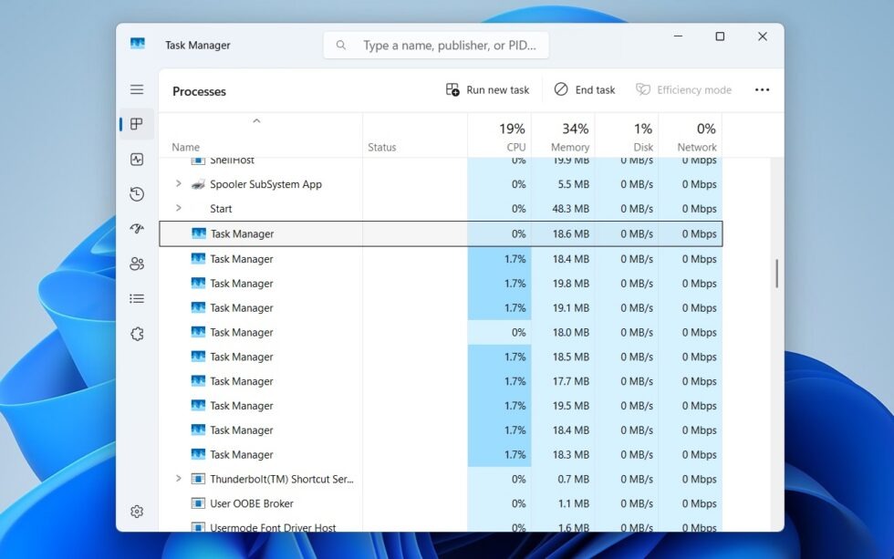 Хуже того, каждое новое открытие «Диспетчера задач» порождает новый процесс поверх старого, что может повторяться практически бесконечно, влияя на производительность системы.