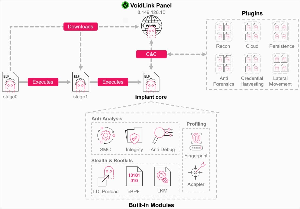 Исследователи из компании Check Point обнаружили новый фреймворк для заражения Linux-систем, который выделяется продвинутой модульной архитектурой и широким набором возможностей. Малварь получила название VoidLink.