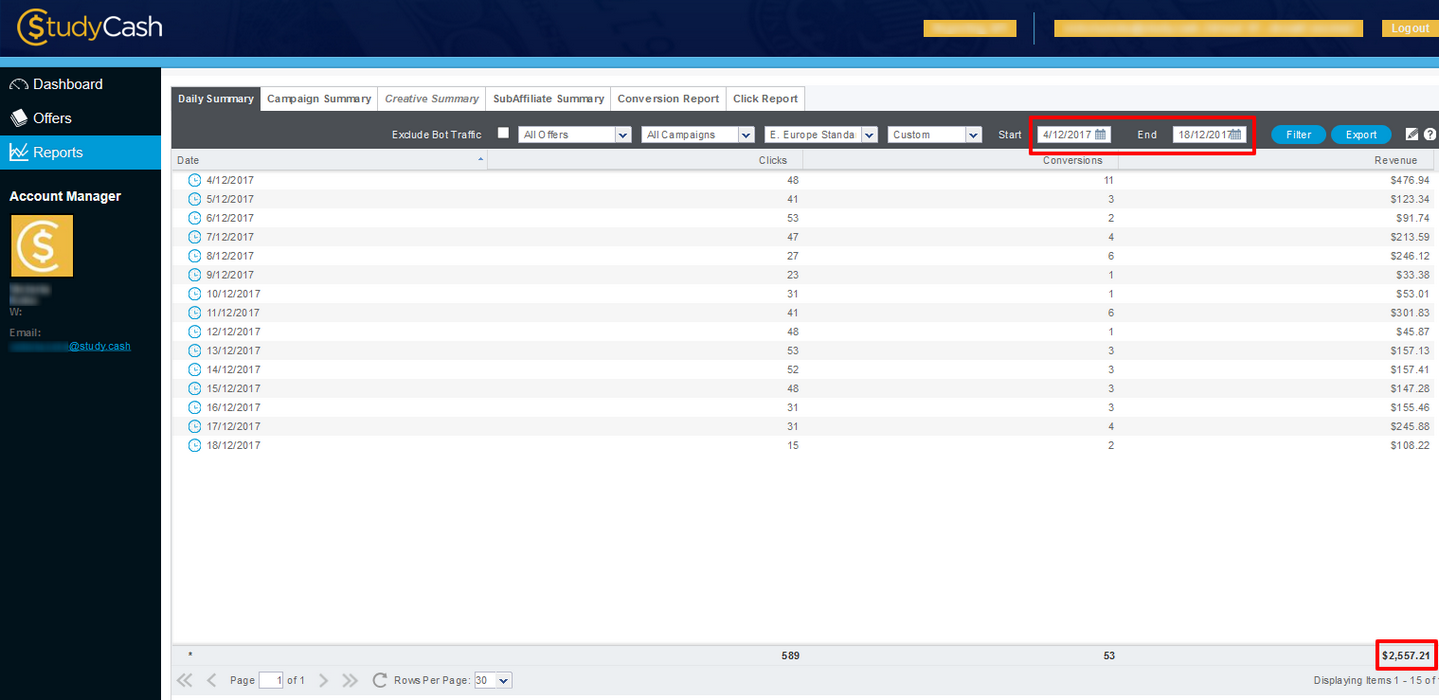 А вот и стата одного из партнеров за 2 недели: