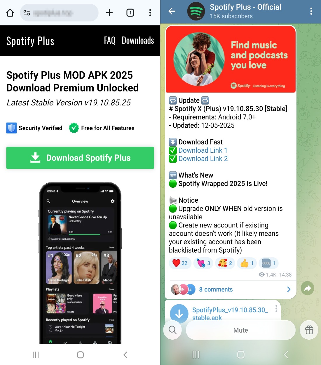 Среди других пострадавших приложений оказались модифицированные версии Spotify, YouTube, Deezer, Netflix и других сервисов. Распрстранение также идёт через порталы вроде Moddroid, Telegram-каналы и Discord-серверы (например, Spotify X с 24 тысячами подписчиков).