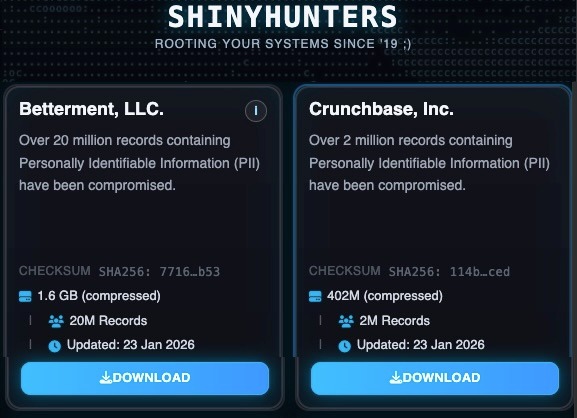 В конце прошлой недели группировка ShinyHunters перезапустила свой Tor-сайт, предназначенный для «слива» данных, и опубликовала информацию о взломах SoundCloud, Betterment и Crunchbase.